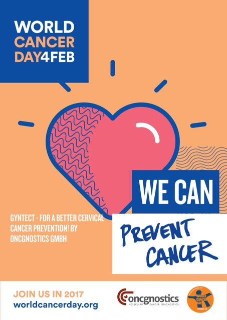 Oncgnostics-Poster zum WeltkrebstagOncgnostics will durch Forschung und den Früherkennungstest GynTect weiter dazu beitragen, dass Gebärmutterhalskrebs bestmöglich bekämpft werden kann.