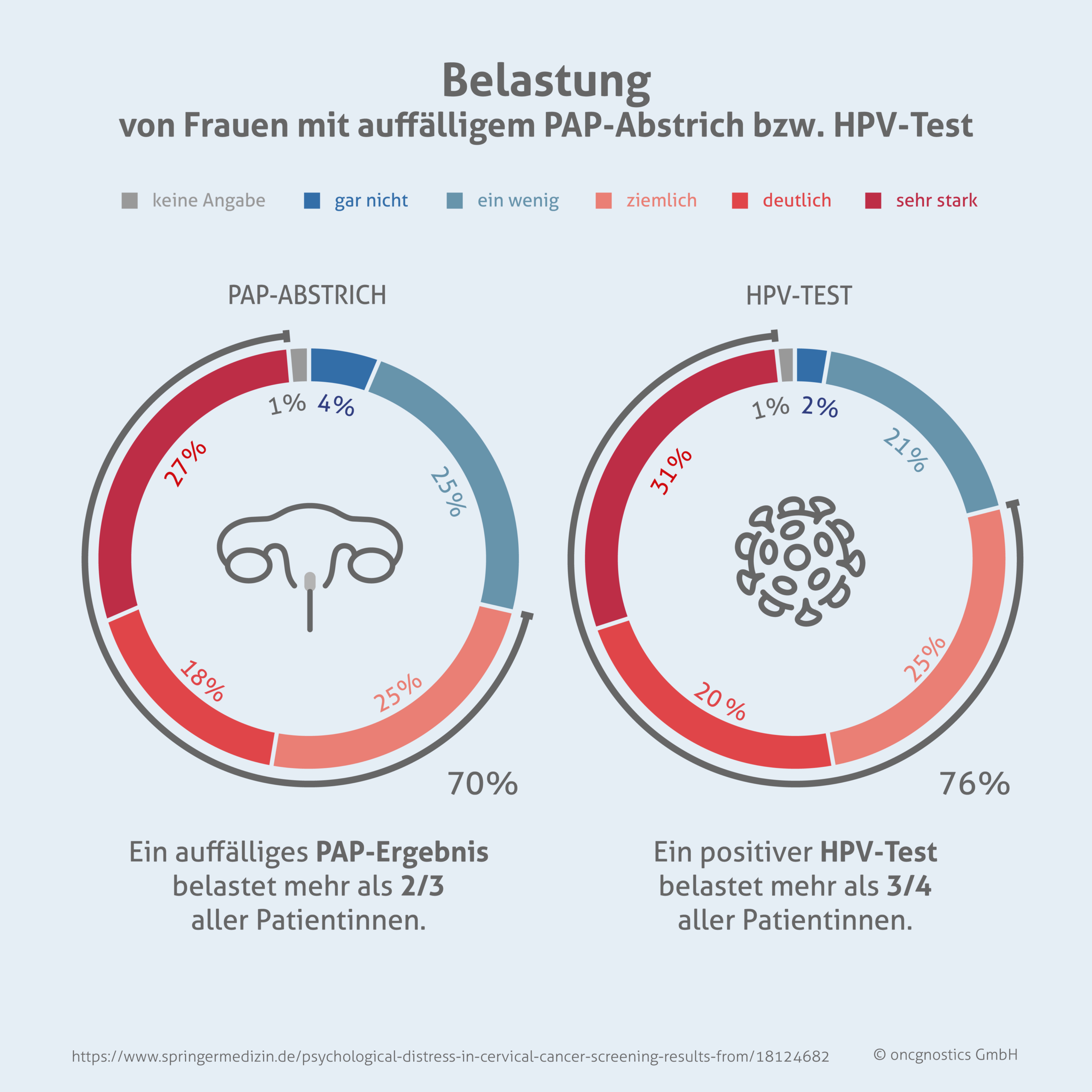 Grafiken zur Studie zur psychischen Belastung bei auffälligen Befunden in der Gebärmutterhalskrebsvorsorge